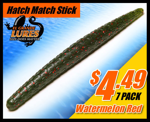 | The Hatch-Match Stick is an 5.25" soft plastic stick bait with a cigar profile. The Hatch-Match stick has added a scale pattern for a more lifelike presentation. Although a soft plastic, the Hatch-Match is durable. The Hatch-Match Stick is our first lure offered in Triple Lamination, which is where the Hatch-Match name derives. Most food sources for our target, the large and smallmouth bass, have three primary colors. We have developed a soft plastic that now has these three primary colors and without a doubt, more closely matches forage fish than any other soft plastic stick on the market. As testimony to this approach, one only has to look at the most popular crankbaits and swimbaits. Almost all have three primary colors. Now, the fisherman can boost their arsenal with realistic color versions for their bodies of water. We started handpouring triple laminates on a full round mold several years ago and could not keep up with demand. We have found the means to produce these and offer them at affordable levels and still meet demand. There is no wrong way to fish a Hatch-Match Stick. You can Texas Rig, Wacky Rig, Carolina Rig, Flick Shake, and several other techniques. |